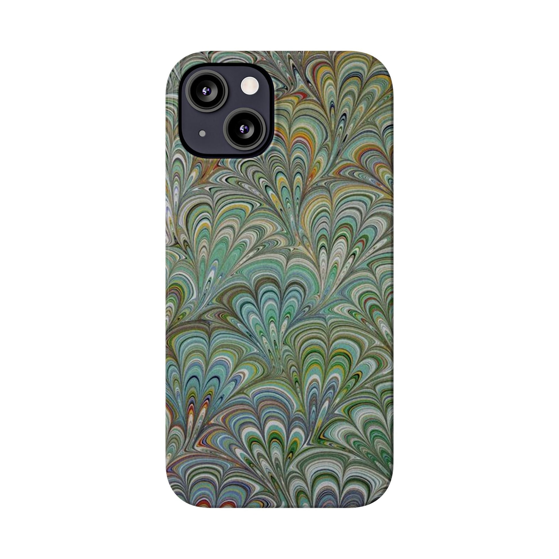 Deep Green Peacock Italian Marbled Design, Italy Feather Phone Case, Multi-Color, Slim Phone Cases, Case-Mate IPHONE16 and all sizes
